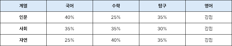 키포인트: 영어 감점형으로 영향 급감, 인문은 국어 40%, 자연은 수학 40%.