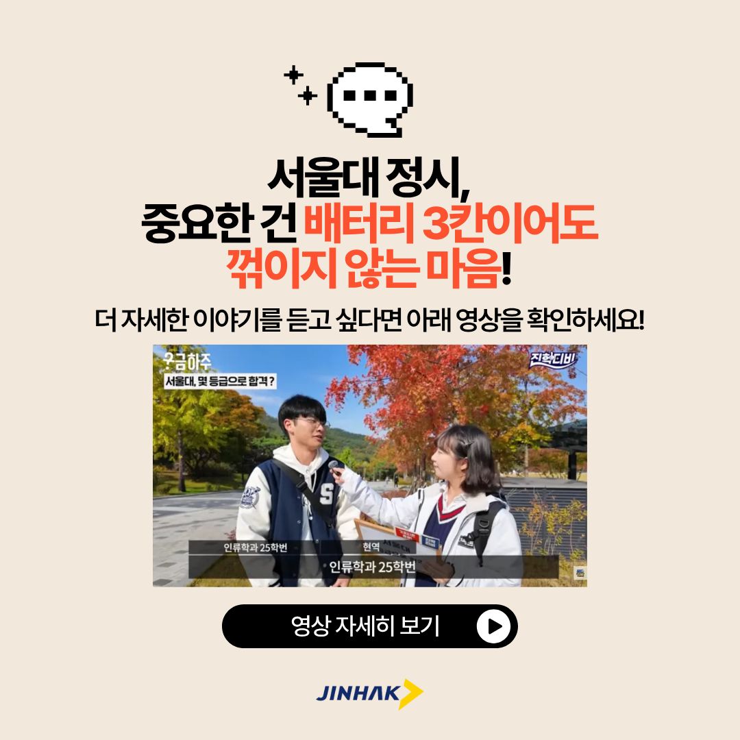 제목 : 중요한건 배터리 3칸에도 꺾이지 않는 마음! 서울대 합격성적 공개!