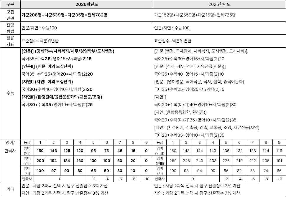 | 제목 : [2025 vs 2026] 서울시립대, 정시 대폭 확대! 782명 선발! | |