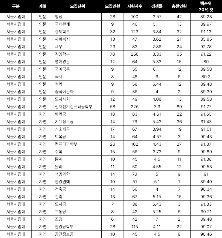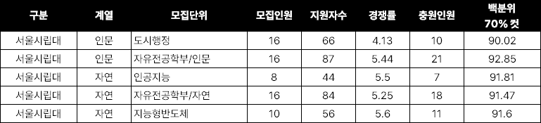 | 제목 : [전년도입결] 서울시립대 2025정시, 모집인원과 충원률 어땠을까? | |