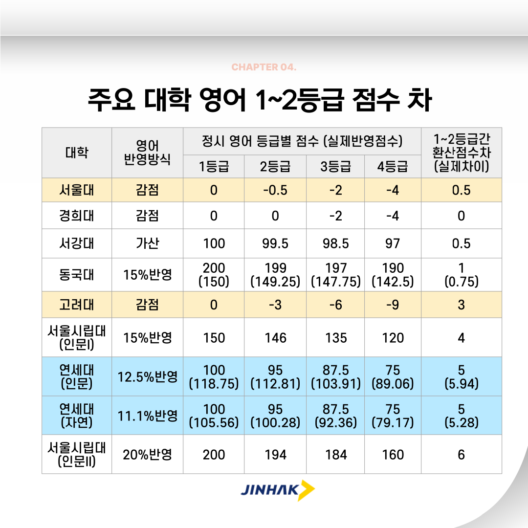 제목 : 영어 반영 방식 모르면 손해! 서울대 -0.5점 vs 연세대 -5점