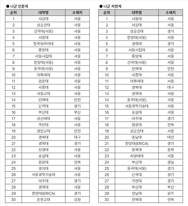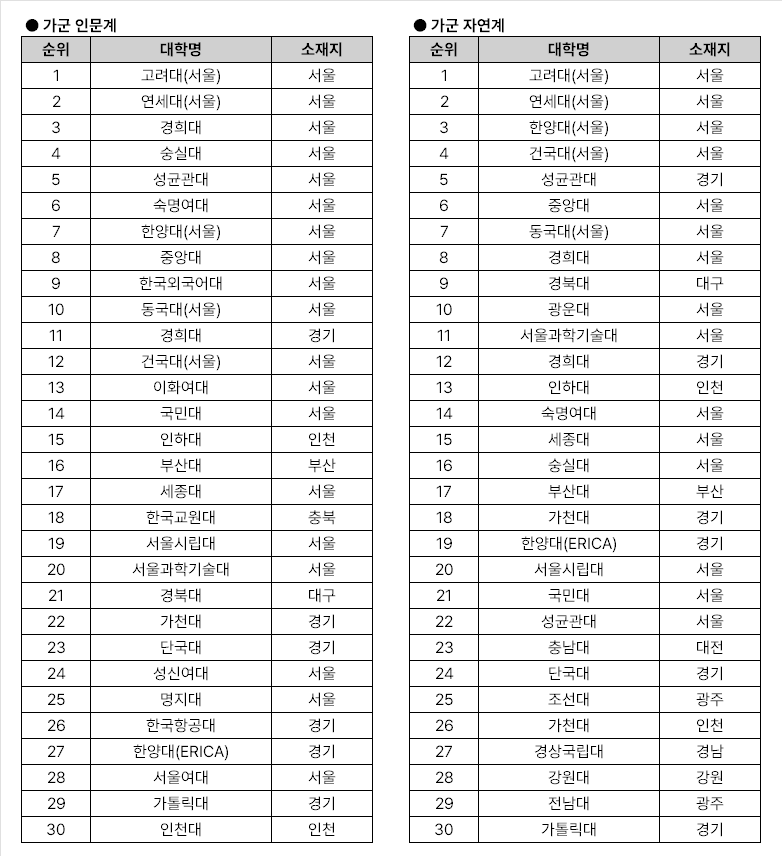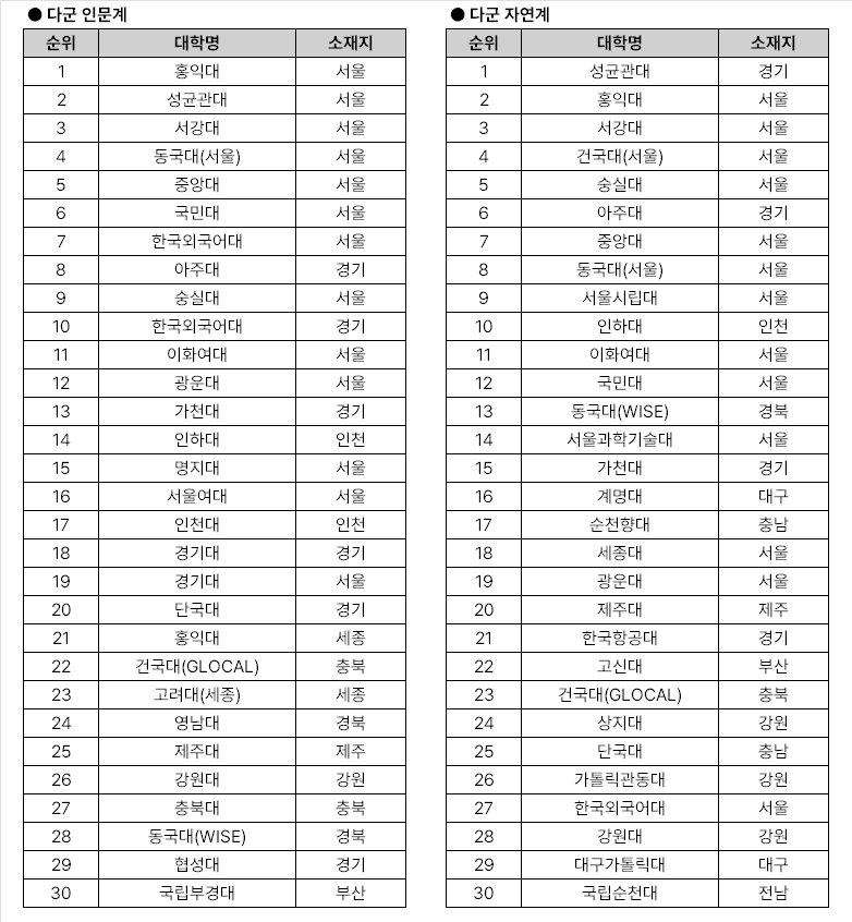 | 제목 : 수능 1~2등급 학생들이 가장 많이 지원하는 대학 TOP30 | |