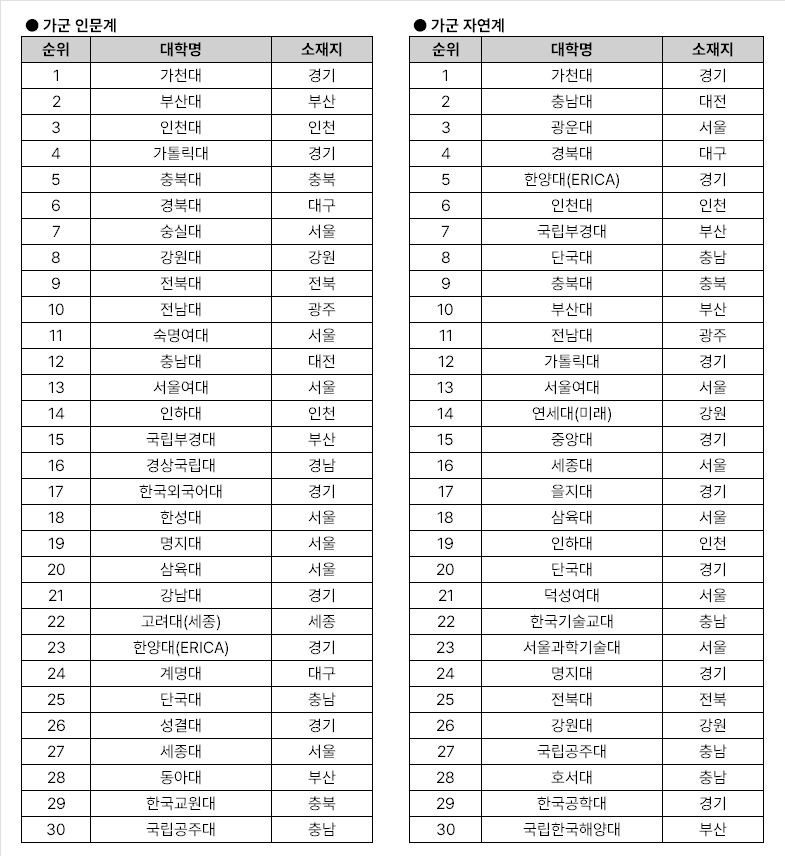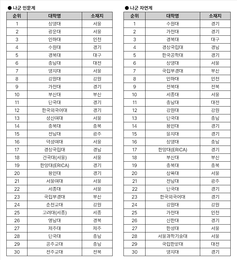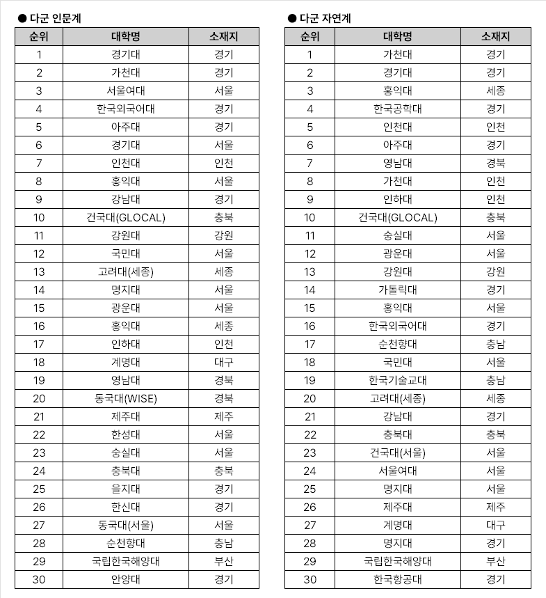 | 제목 : 수능 3~4등급 학생들이 가장 많이 지원하는 대학 TOP30 | |