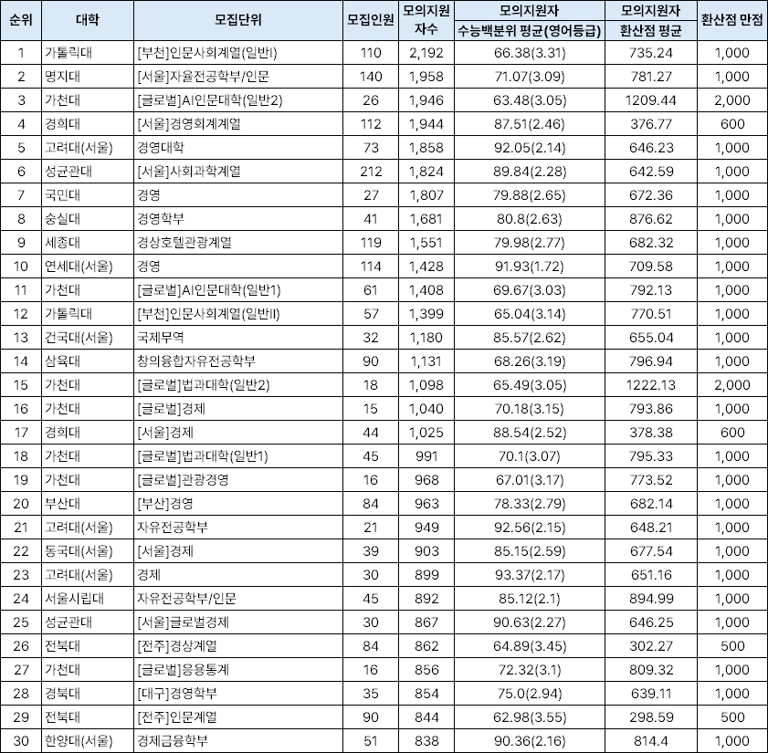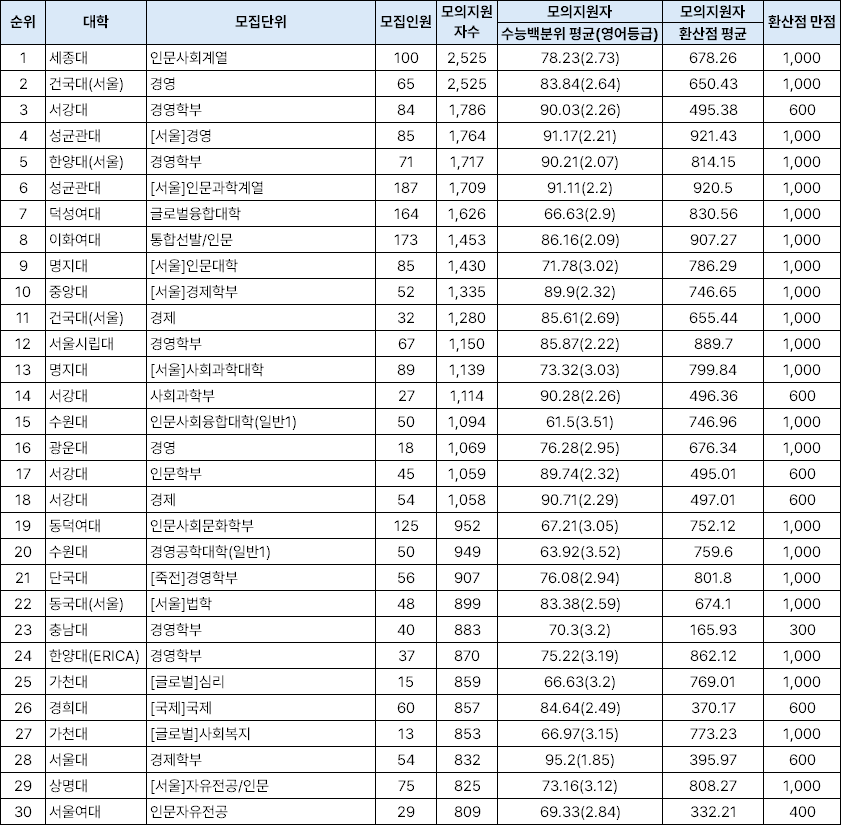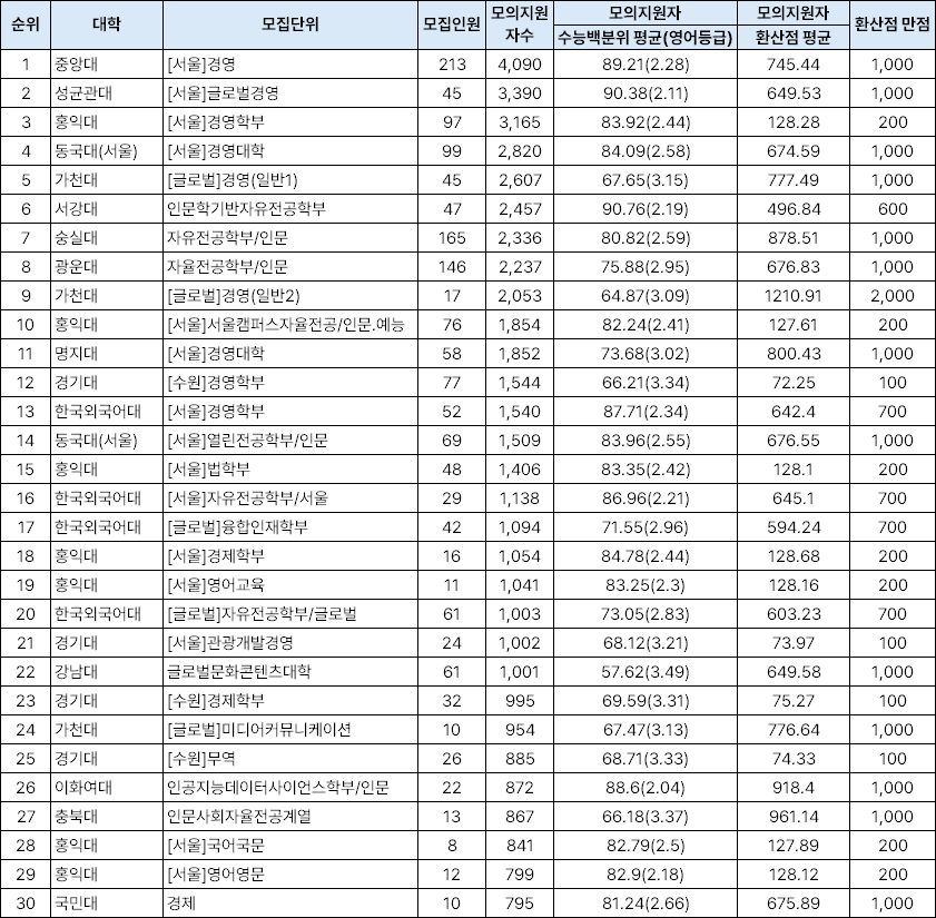 ▼ 다군 인기대학