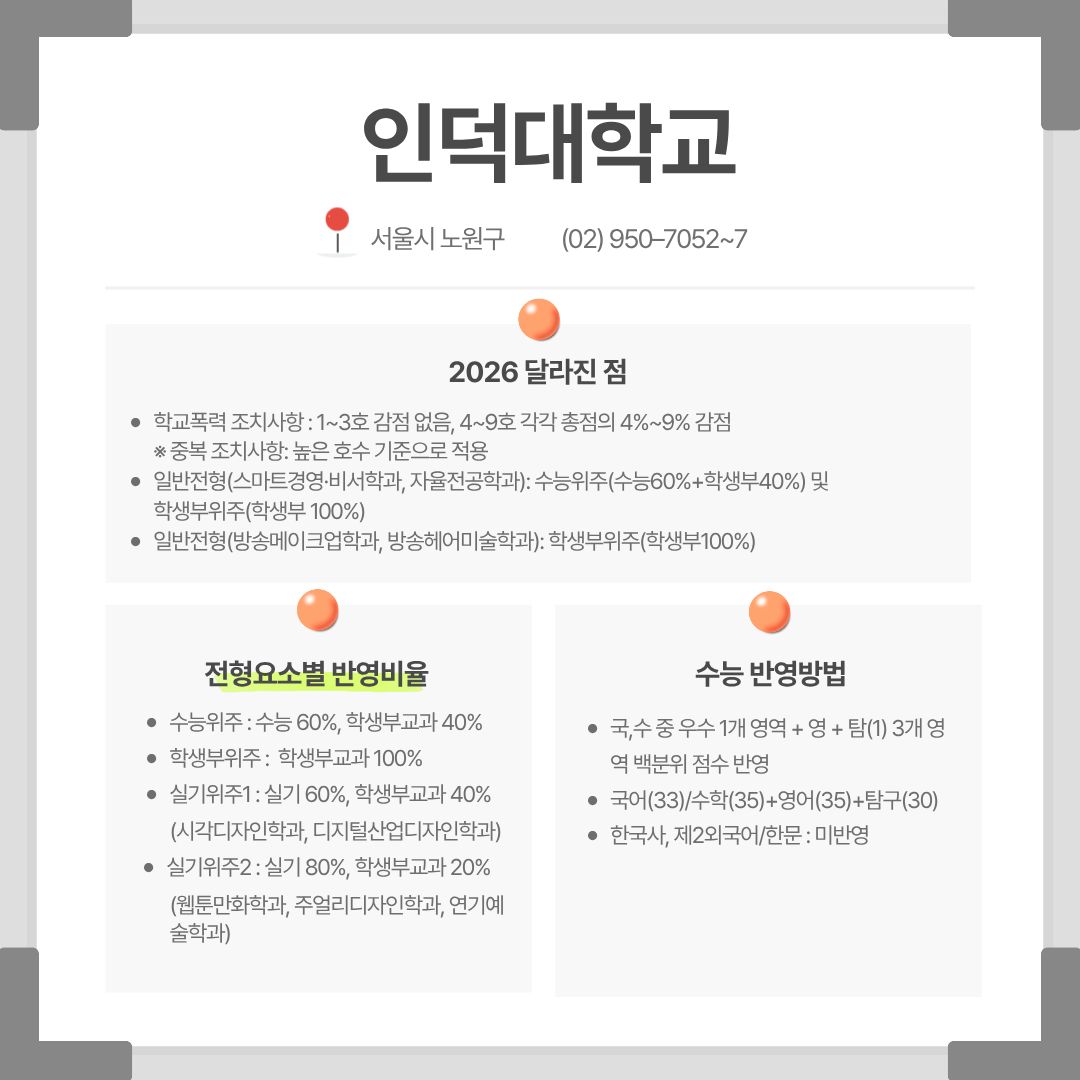 제목 : 2026 전문대학 정시 - 서일대, 숭의여자대, 신구대, 인덕대, 한양여자대