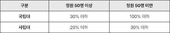 대학 규모와 설립 유형에 따라 증원 가능한 인원이 제한됩니다.