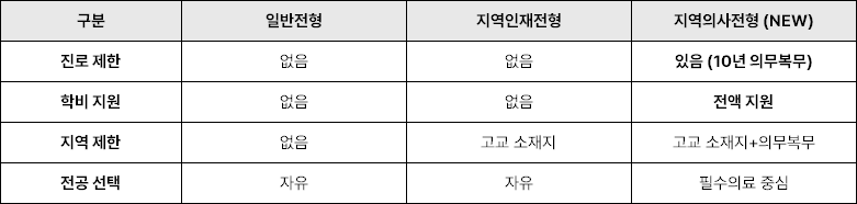 ■ 전형별 비교 – 일반전형 vs 지역인재전형 vs 지역의사전형