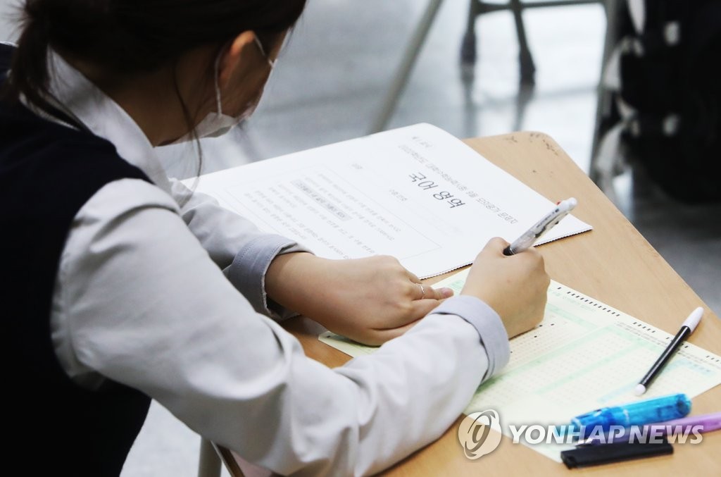 (수원=연합뉴스) 홍기원 기자 = 2022학년도 대학수학능력시험 9월 모의평가가 실시된 1일 오전 경기도 수원시 조원고등학교 3학년 교실에서 학생이 시험 시작을 기다리고 있다. 2021.9.1 xanadu@yna.co.kr