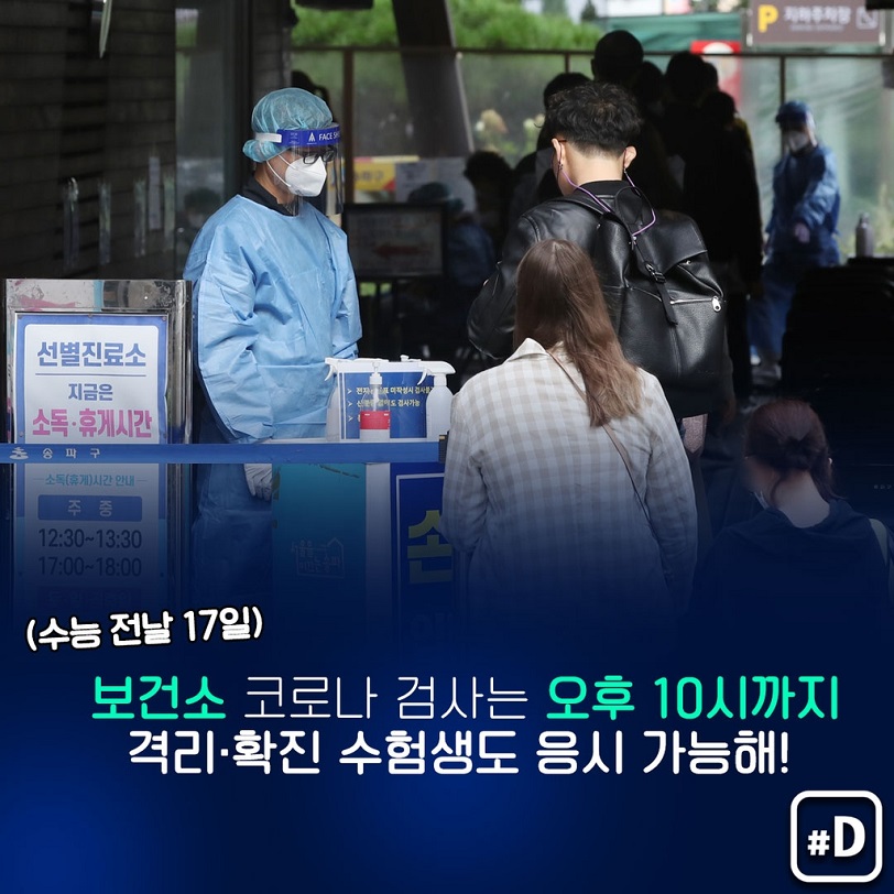 수능 전날인 17일에는 보건소 코로나 검사 시간이 오후 10시까지 연장됩니다.